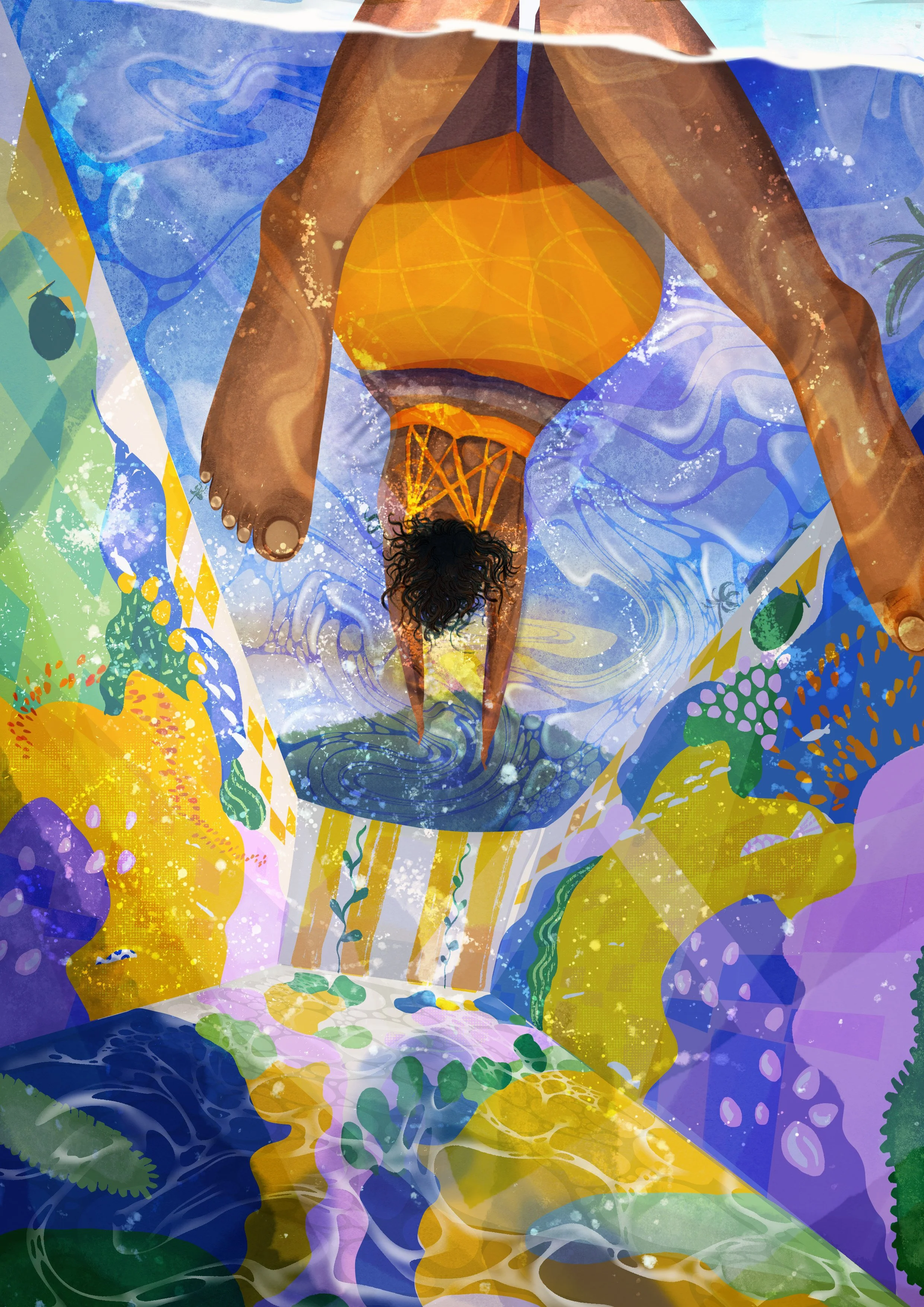 It is also a great time to experiment with or refine techniques. I am currently illustrating a children’s book where I have to draw a lot of bubbles and environments. In my pursuit to create more work (hi pressure to perform faster for social media! how are you today?), I sometimes skip adding context or depth in my pieces. Reworking this concept gave me a way to practice interactions between water and light, and venture back into building environment in a small way.